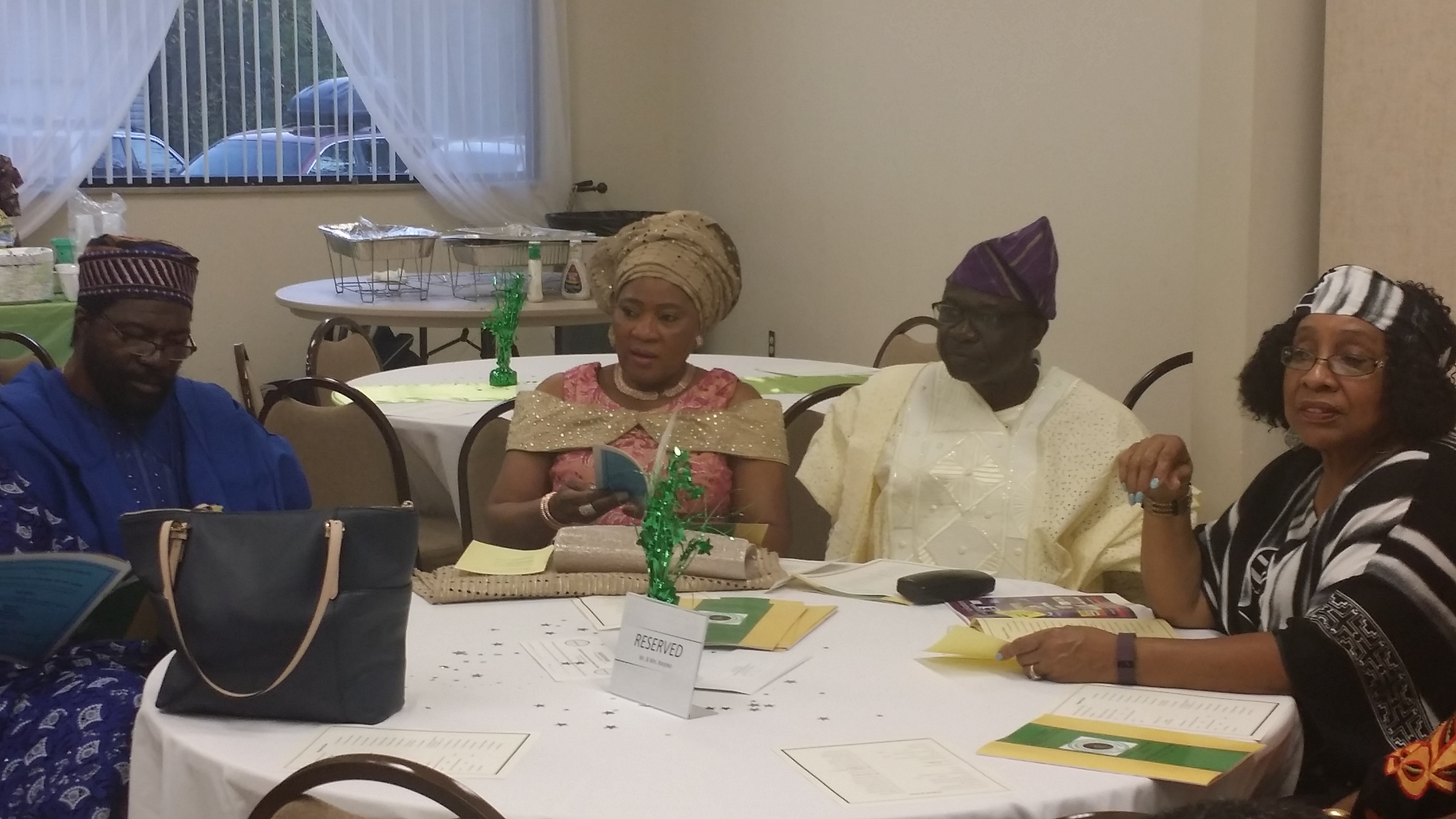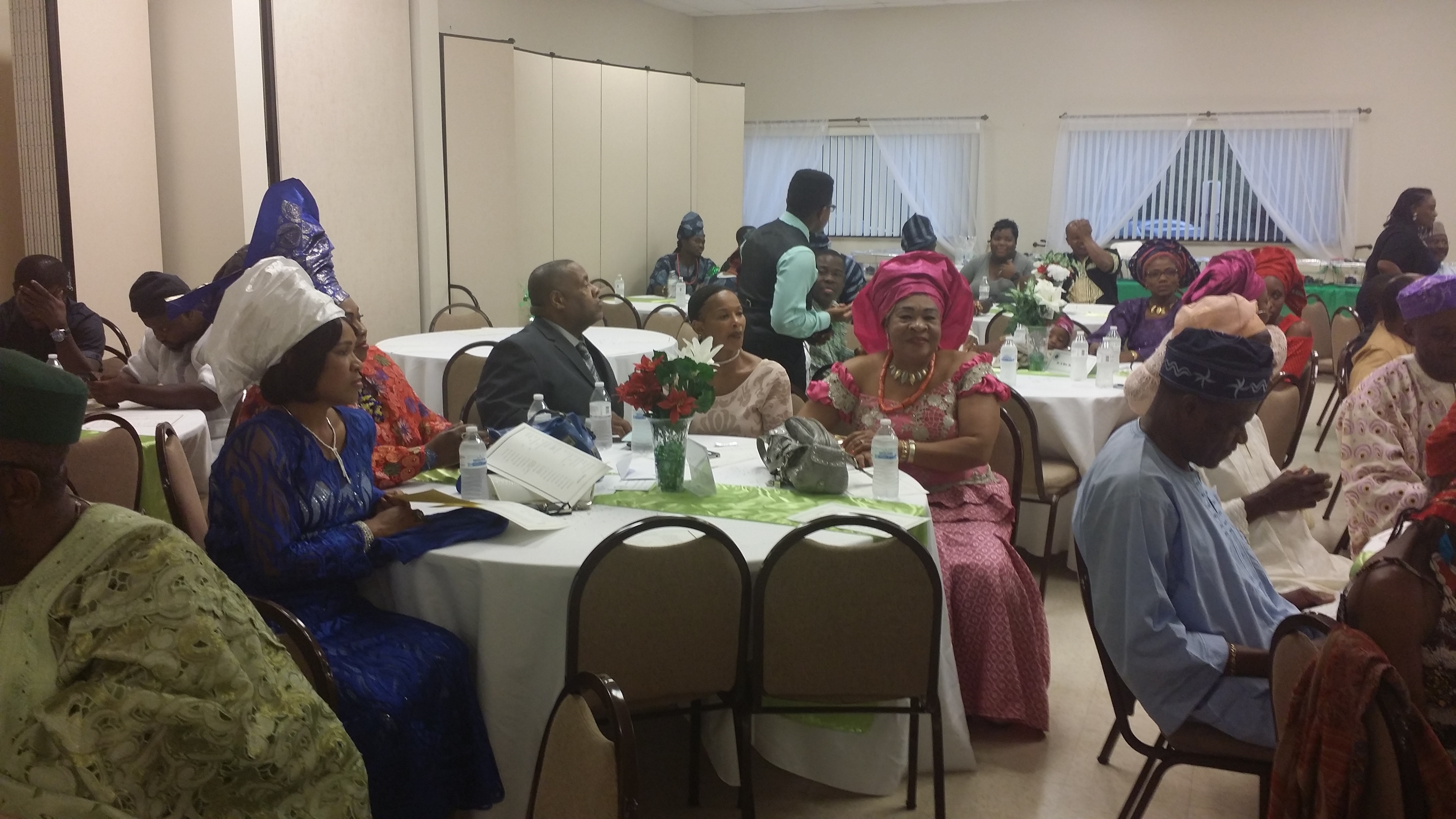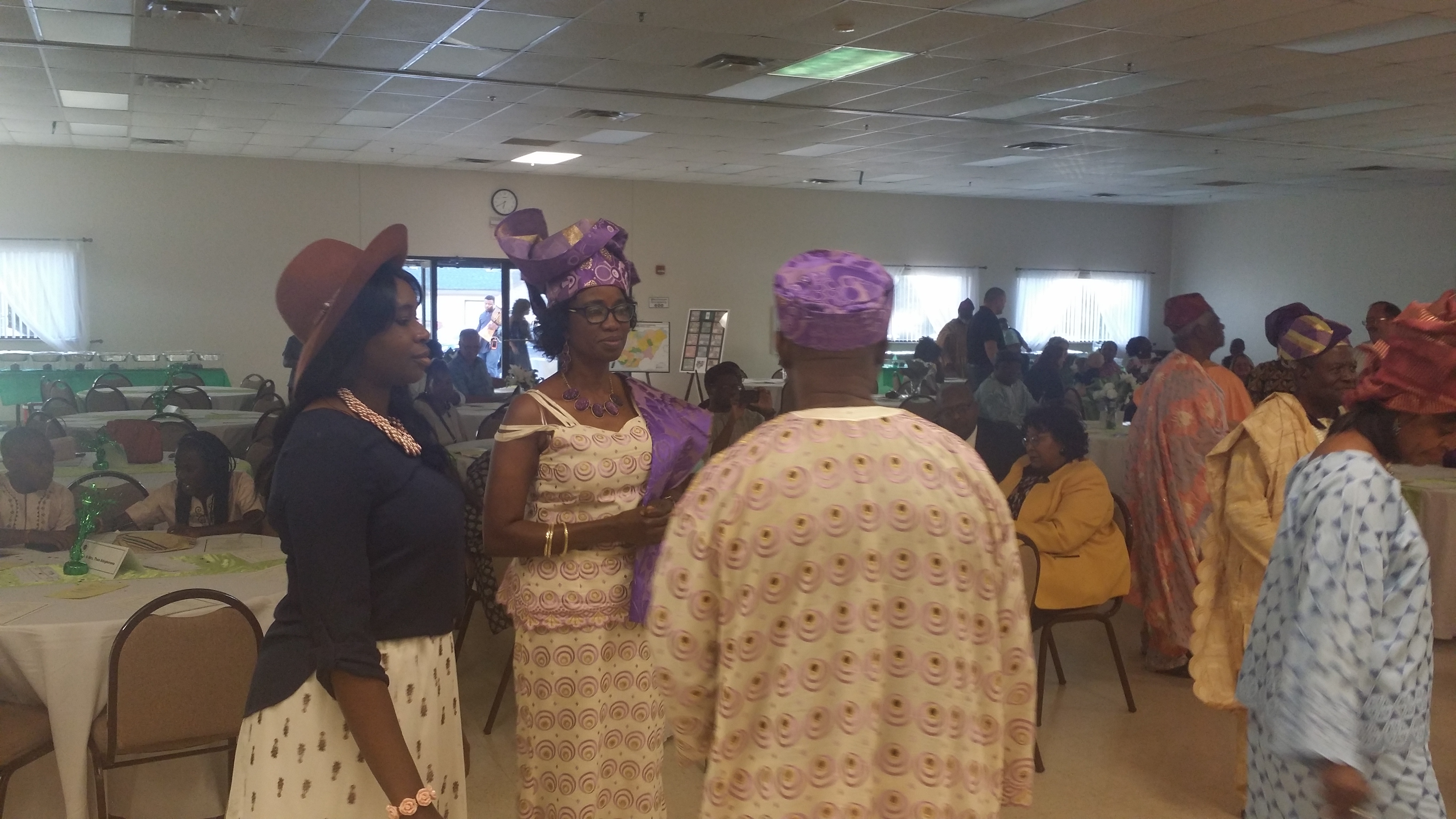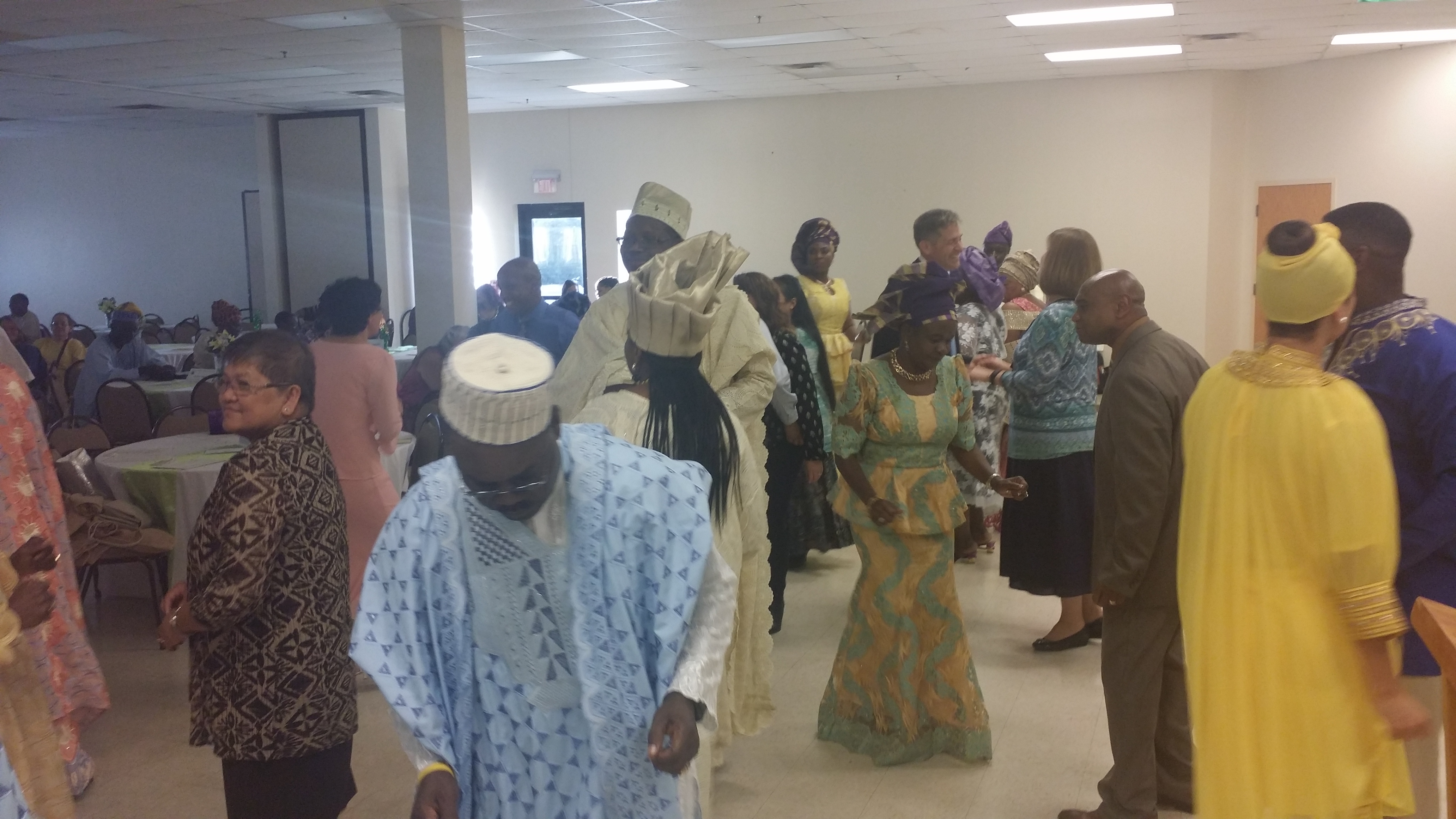 The Main Hall of St Benedicts De Moore in Dayton Ohio was punctuated with an array of Artful artifacts, cultural couture and colorful conversations, even as friends of all races and ethnic backgrounds, joined families of Nigerian Americans to enjoy traditional Yoruba dishes and dance to authentic Yoruba music.c