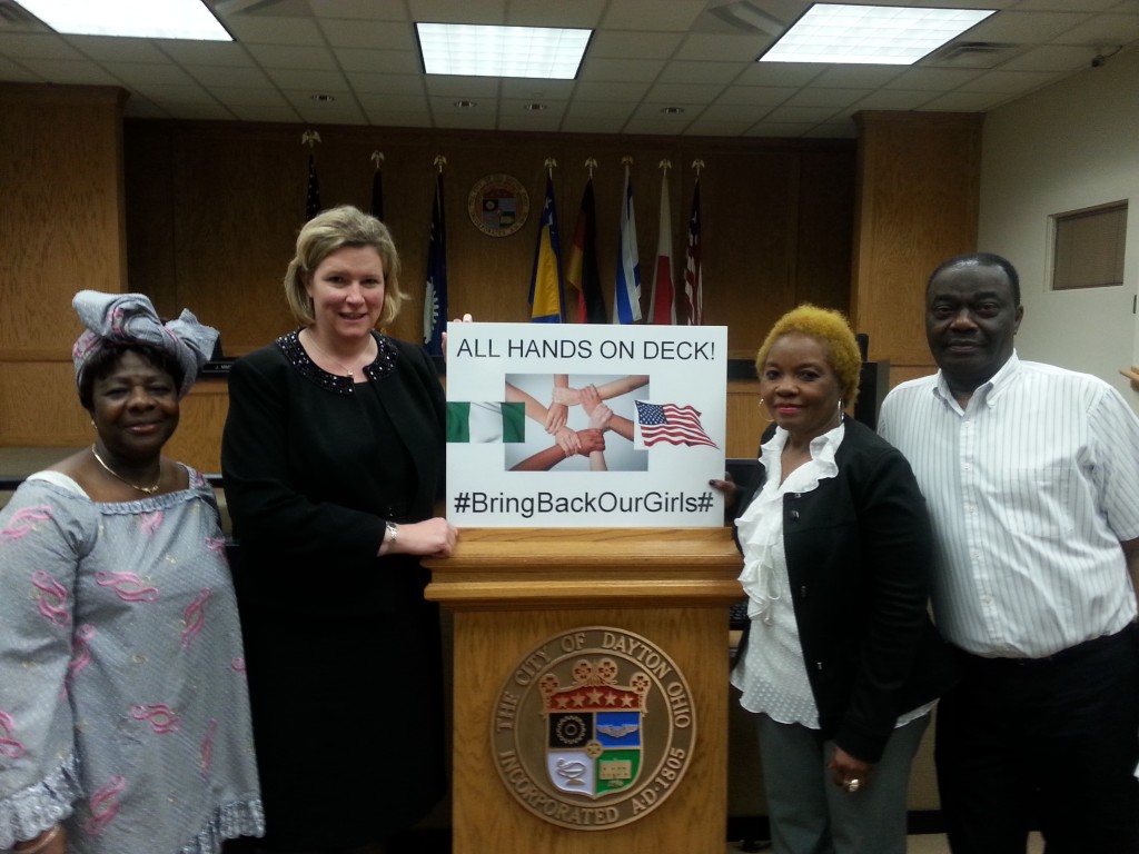 Mayor of City of Dayton OH, Nan Whaley Stands was joined by with members of the Nigerian Community in the Dayton region inside the City Hall Chambers to support the …
