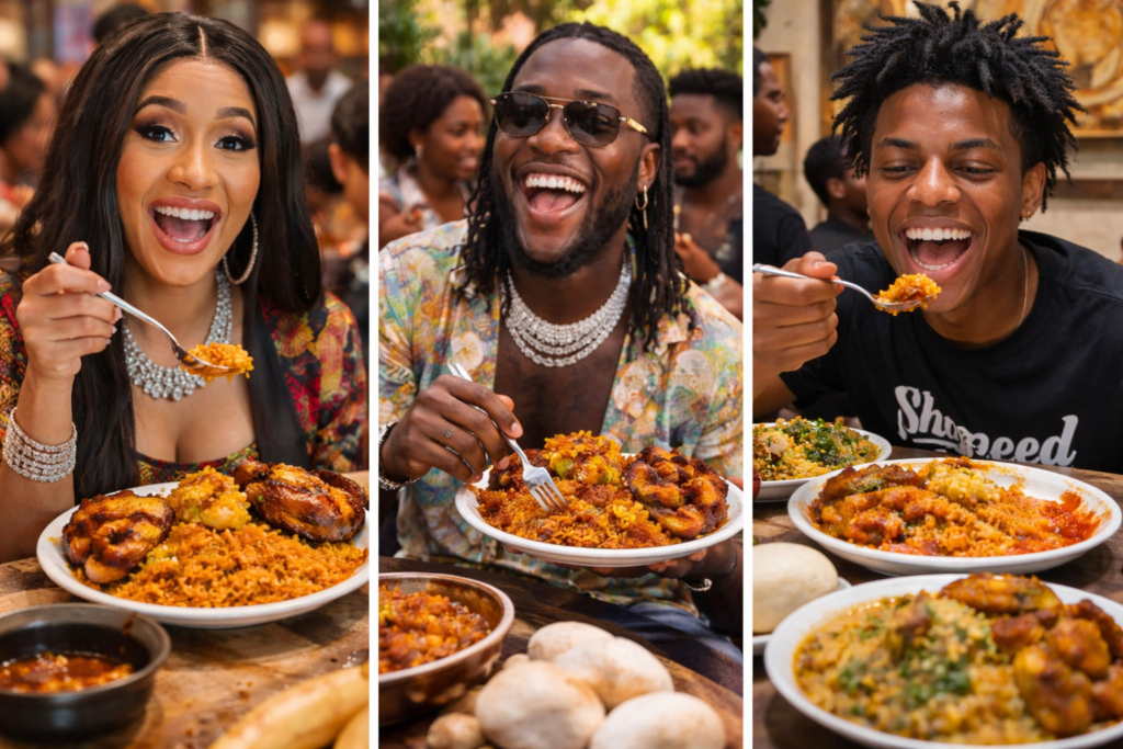 Celebrities have also joined the chorus. In interviews and online posts, stars like Burna Boy—a global ambassador for Afrobeats culture—regularly celebrates Nigerian cuisine while touring North America. Hollywood actor Michael B. Jordan once joked in an interview about discovering Jollof rice through friends in the African diaspora, while rapper Cardi B famously praised the dish on social media after tasting it at a Nigerian gathering. She reportedly said she wanted to visit Nigeria to “see the real Nigeria and eat jollof rice.” Her comment went viral and helped introduce the dish to millions of fans online.
