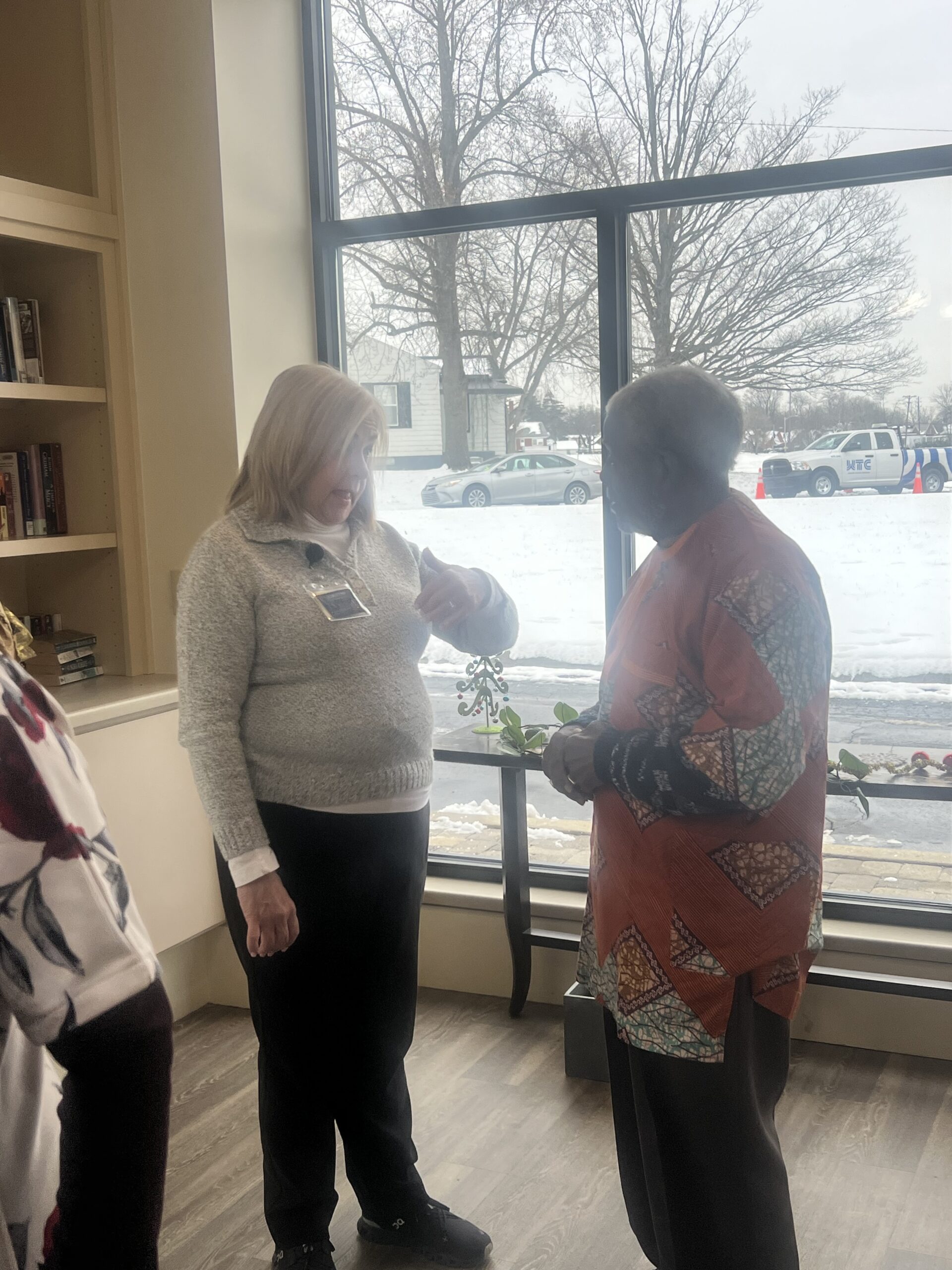 - Dec. 16 at Mary Scott: Mrs. Badiru, President of Egbe Omo Yoruba, presented blankets to Activity Director Becky Hall during a ceremony at the facility.